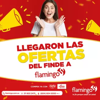 En el amplio catálogo Flamingo podrá encontrar un área de flamingo televisores, flamingo celulares, y una amplia variedad de ofertas y descuentos en vestuario, calzados, electrodomésticos de última tecnología, joyería, juguetería, ferretería, muebles en variedad de estilos, informática, electrónica y motos. y otros servicios como soat, óptica y viajes.