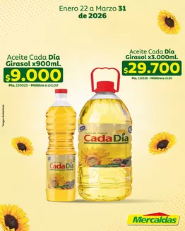 Aproveche el 3 x 2 de Supermercados Mercaldas los domingos y lunes de todo el año; 10% de descuento en medicamentos los martes; 30% de descuento en frutas y verduras los miércoles; 10% de descuento en carnes de res, cerdo, pollo y pescado los jueves; 25% de descuento en vinos los viernes; y 10% de descuento en carne de res y cerdo los sábados.
